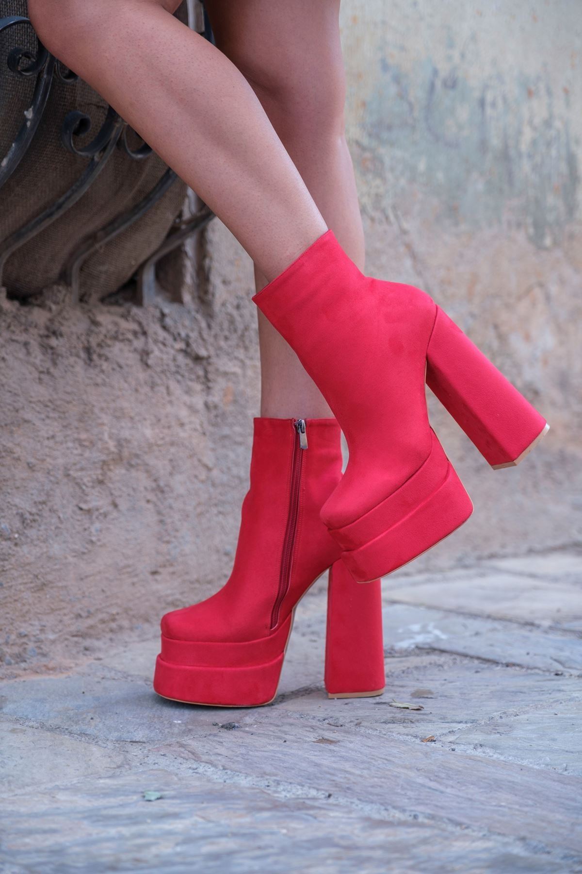 Kırmızı Çift Platform Özel Tasarım Kadın Ayakkabı Vega