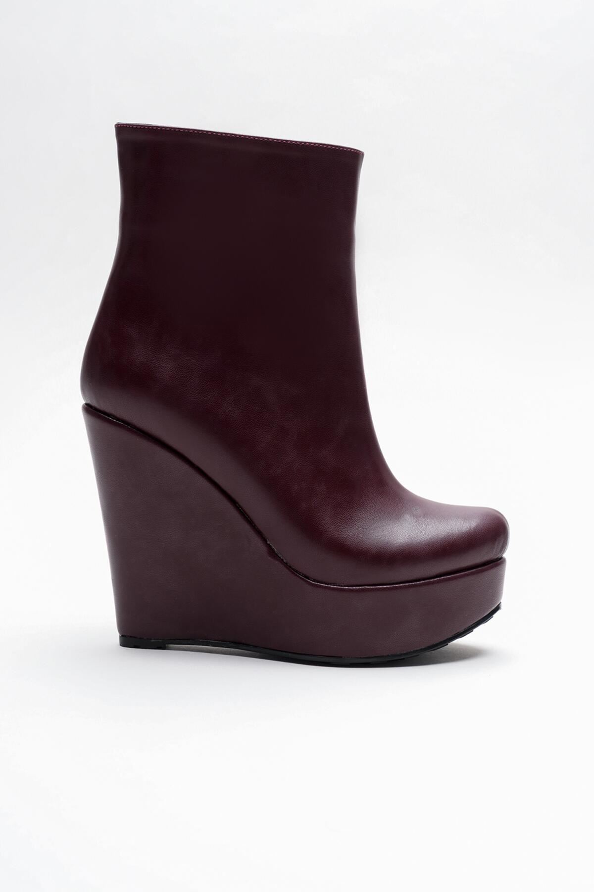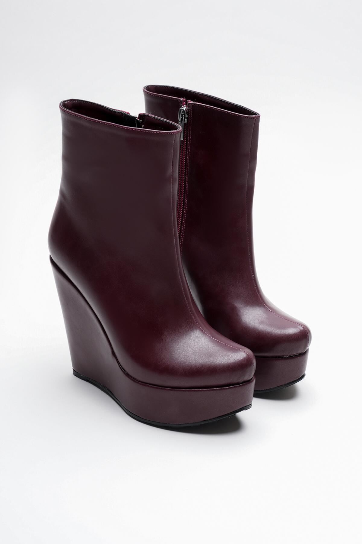 Bordo Cilt Daina Dolgu Topuklu Kadın Bot