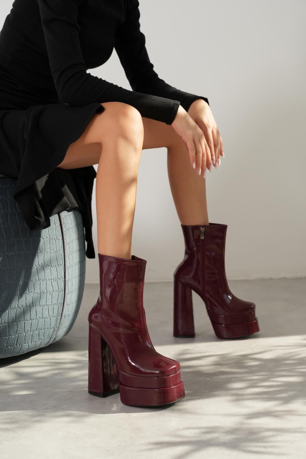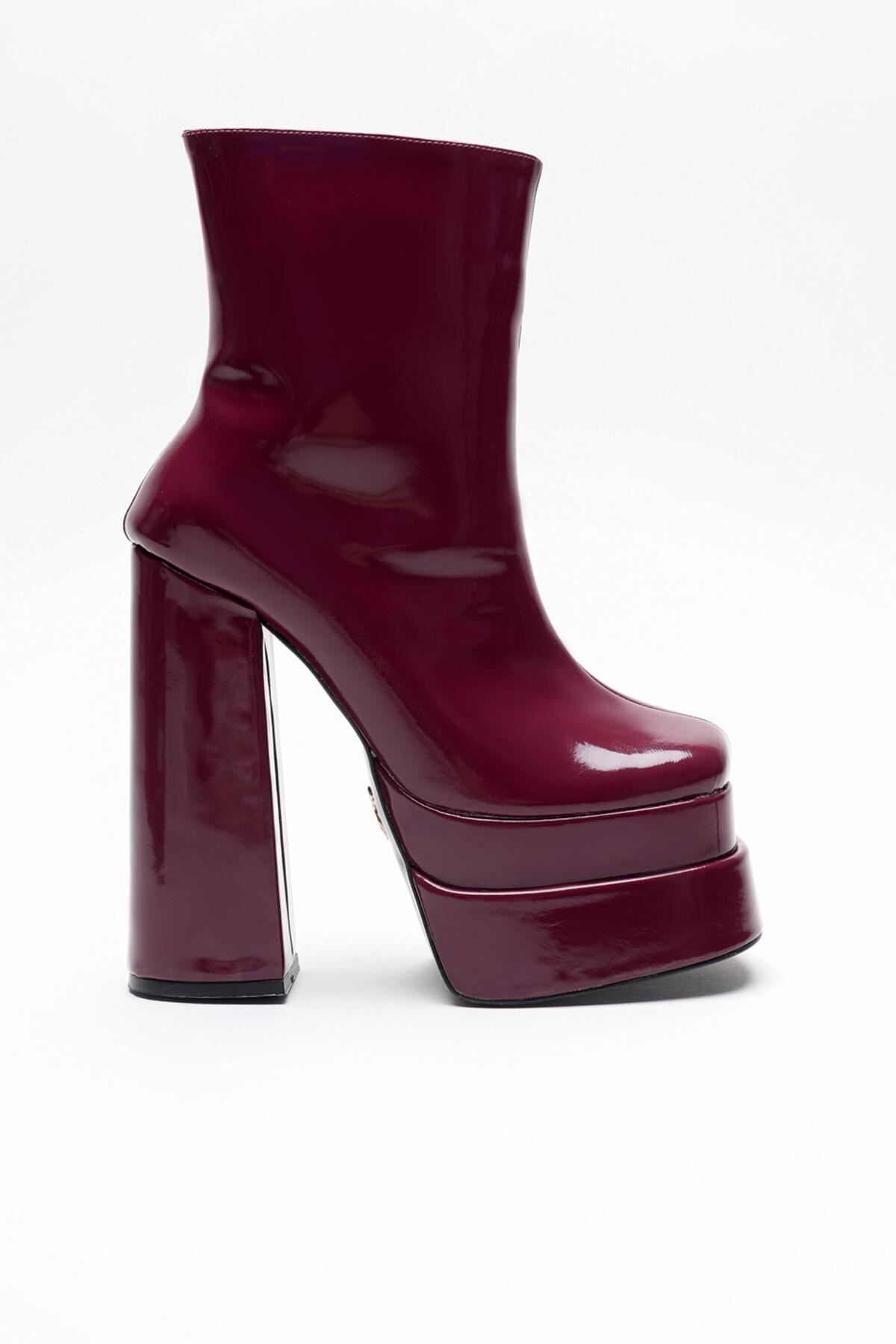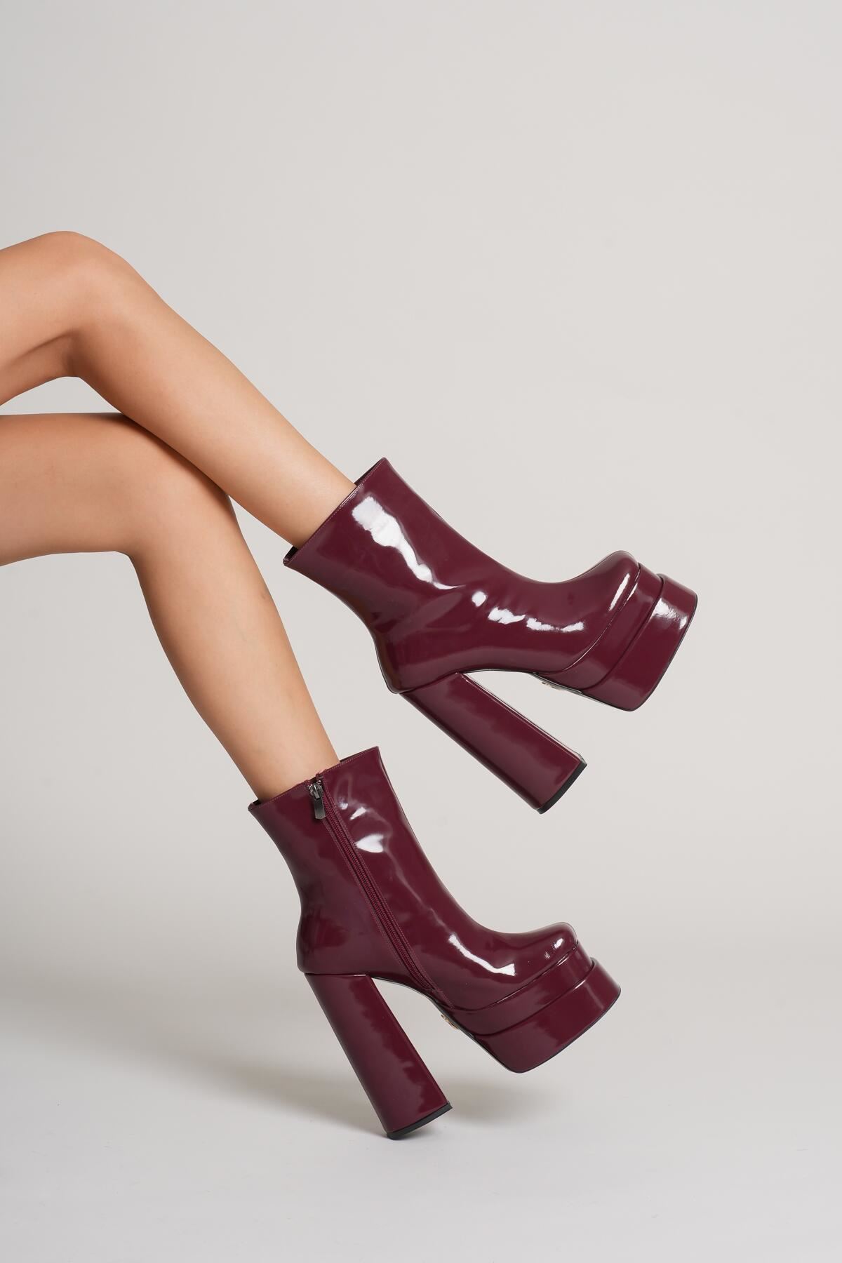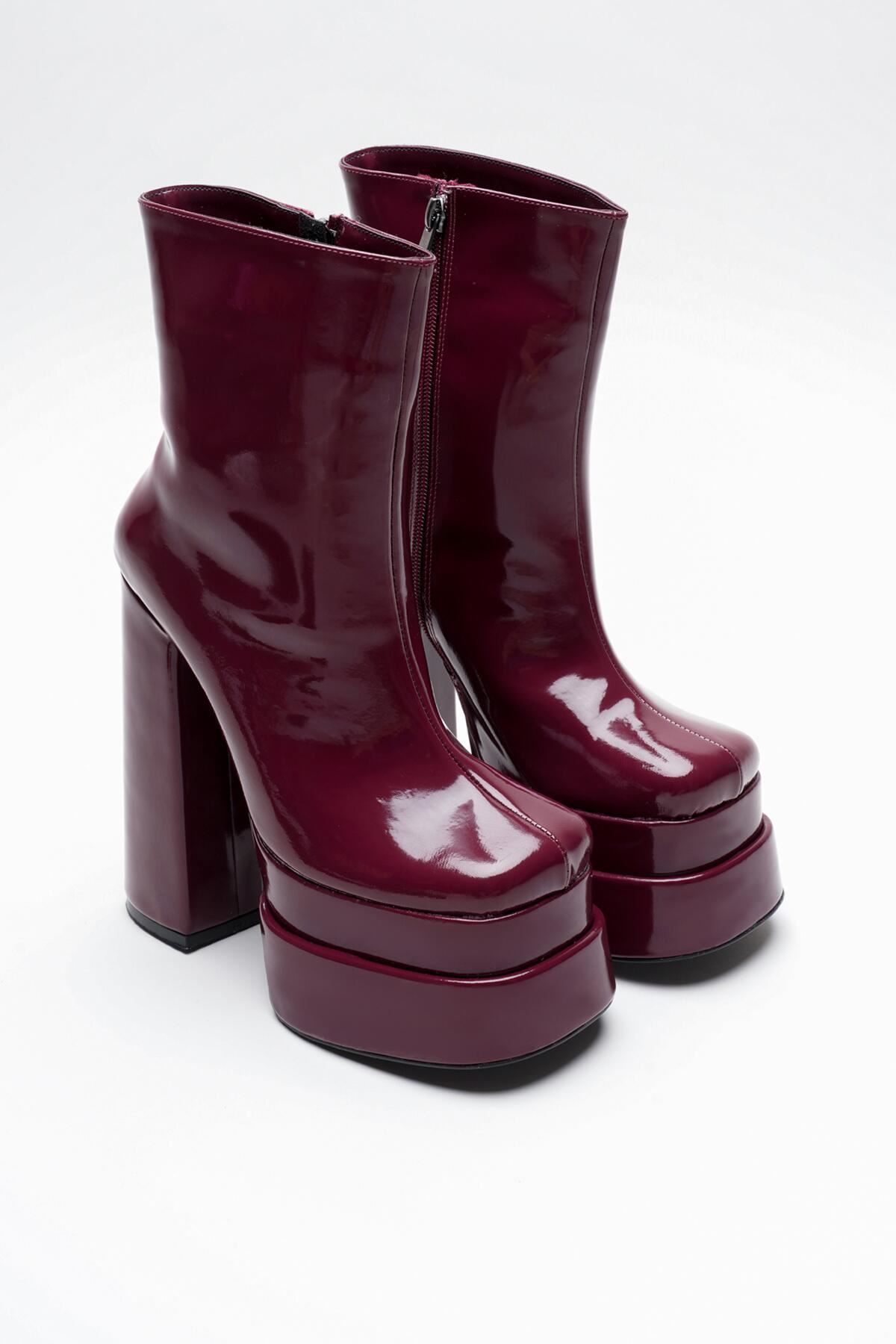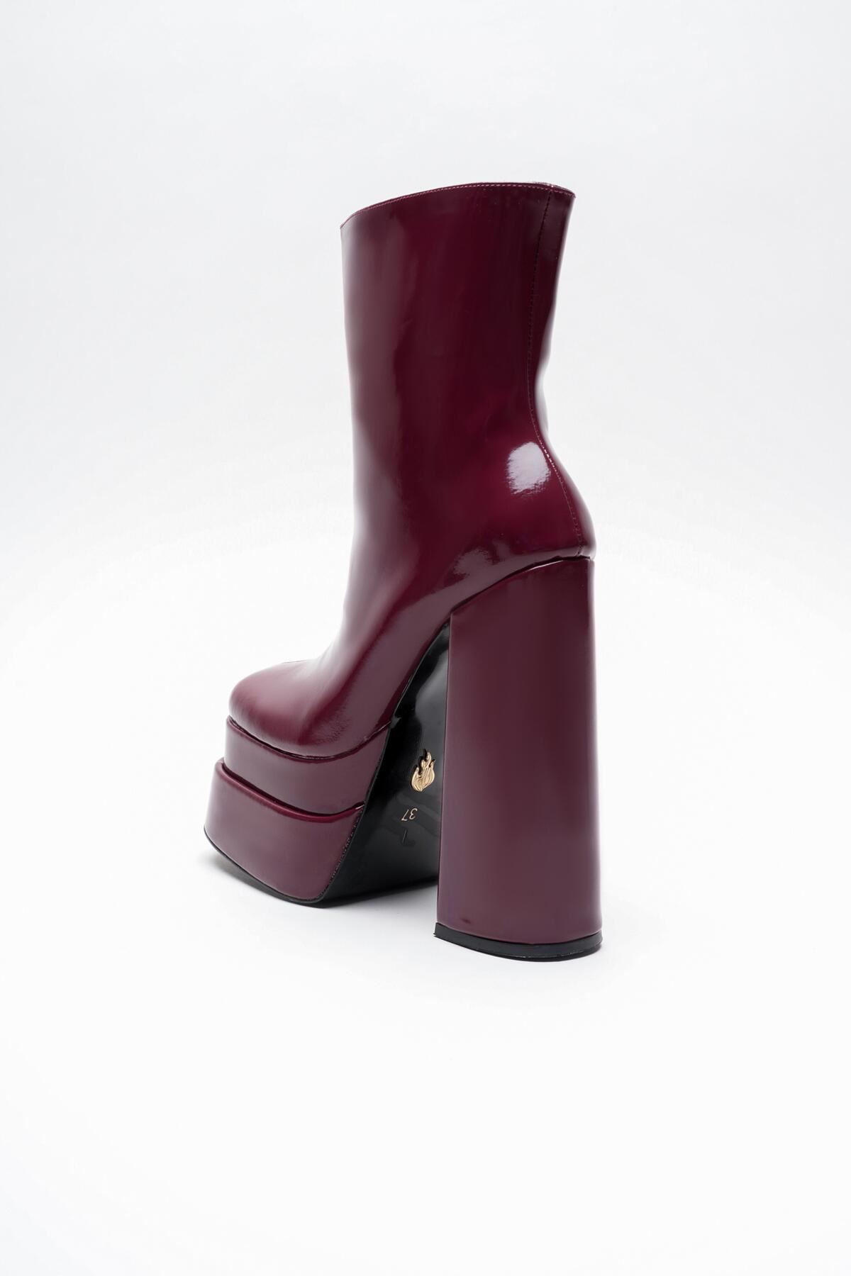 Bordo Rugan Çift Platform Özel Tasarım Kadın Ayakkabı Vega