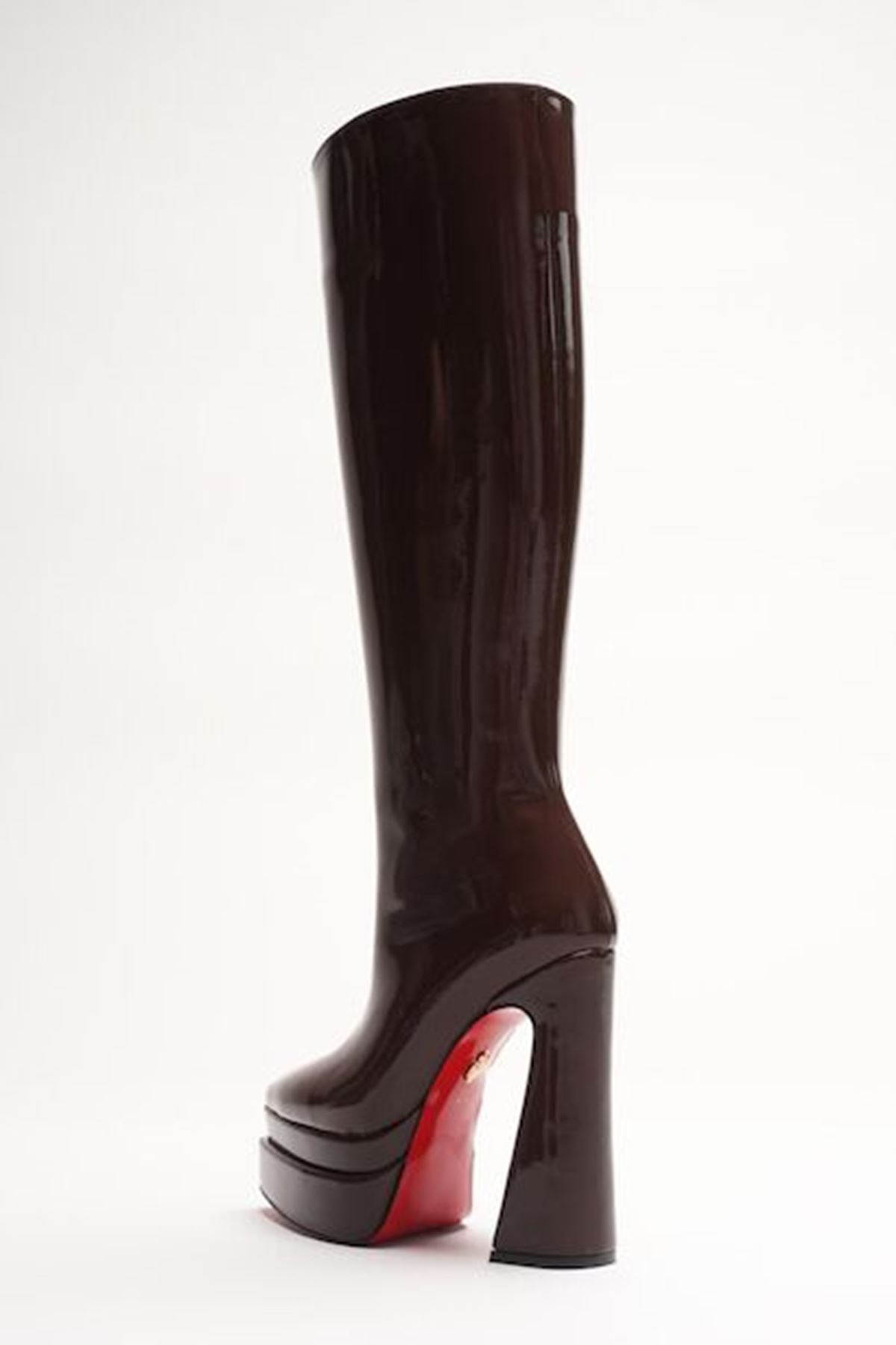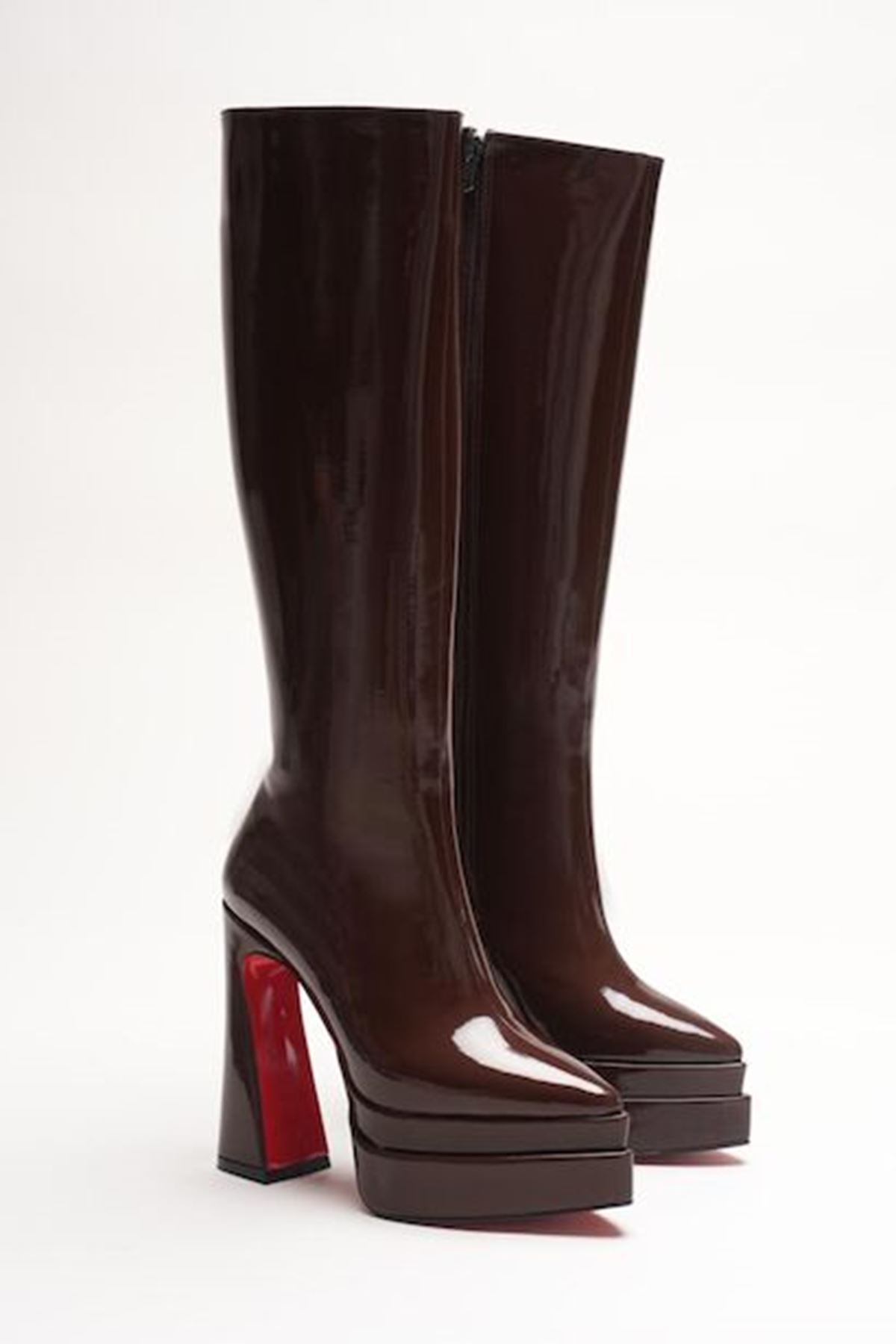 Çift Platform Tasarım Kadın Çizme Yüksek Topuklu Ayakkabı Kahverengi Rugan Jolly