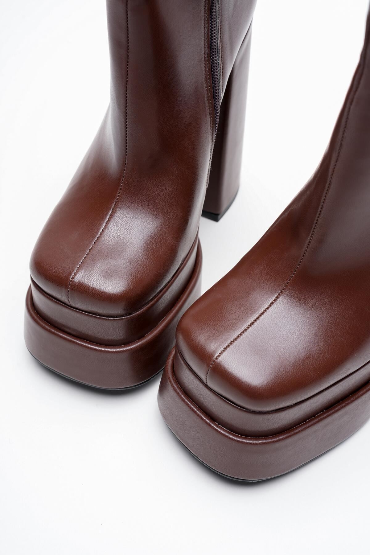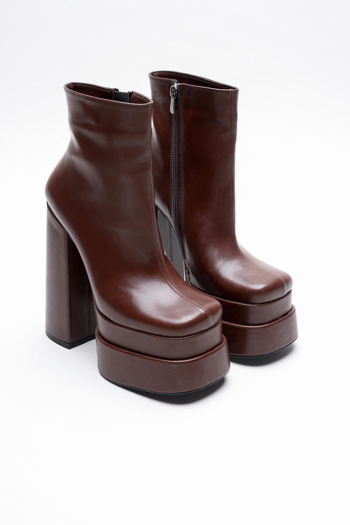 Kahverengi Cilt Çift Platform Özel Tasarım Kadın Ayakkabı Vega