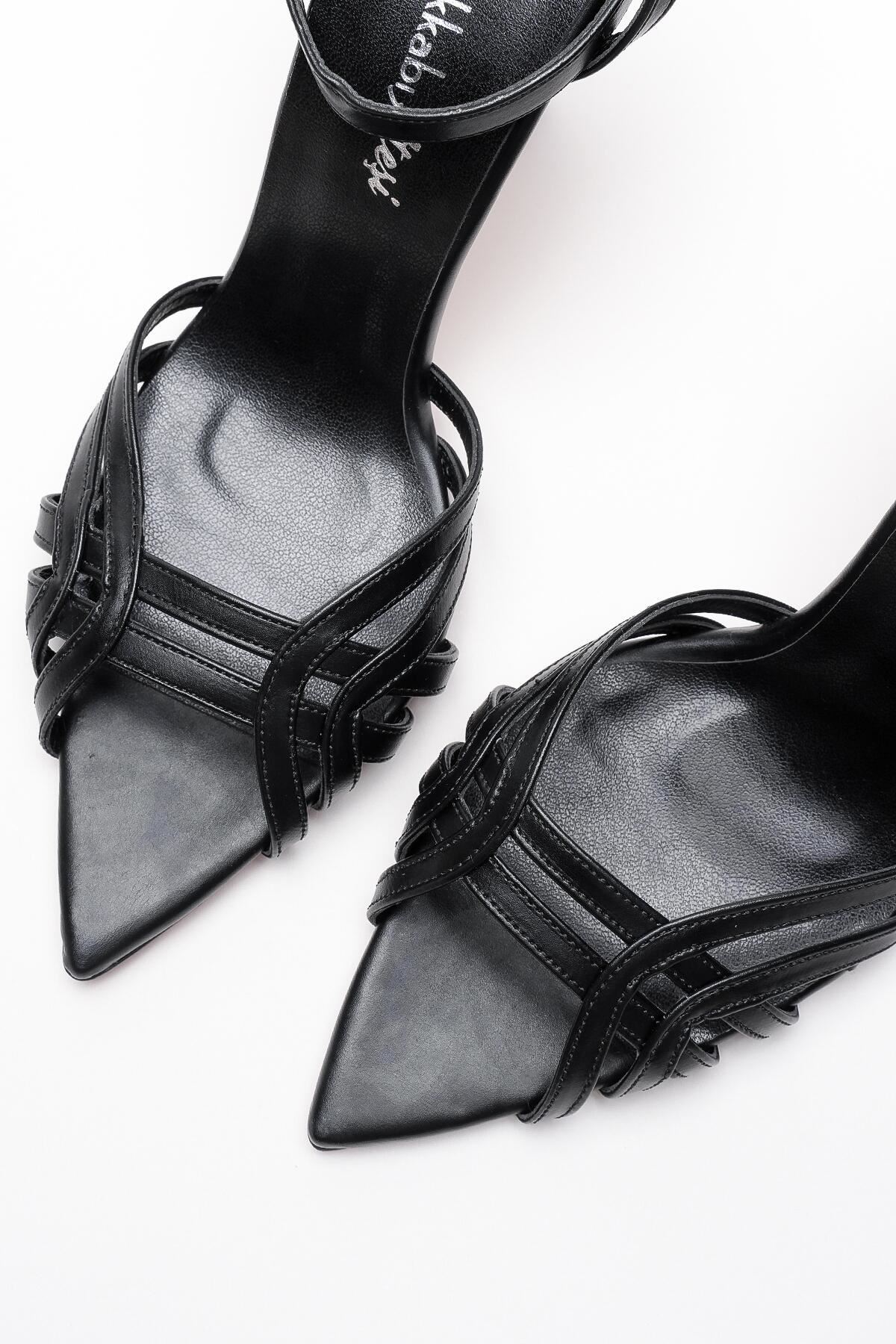 Prono Siyah Cilt İnce Kadın Topuklu Ayakkabı