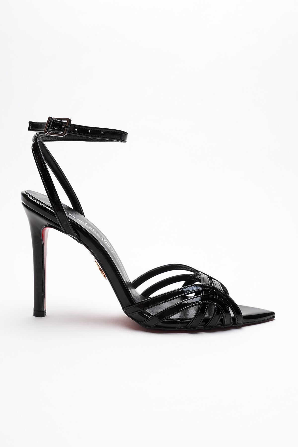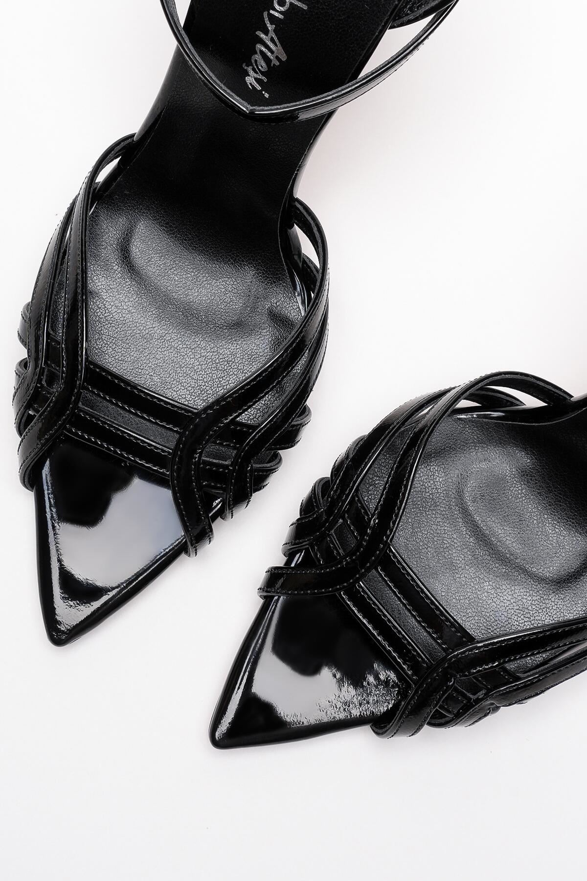 Prono Siyah Rugan İnce Kadın Topuklu Ayakkabı
