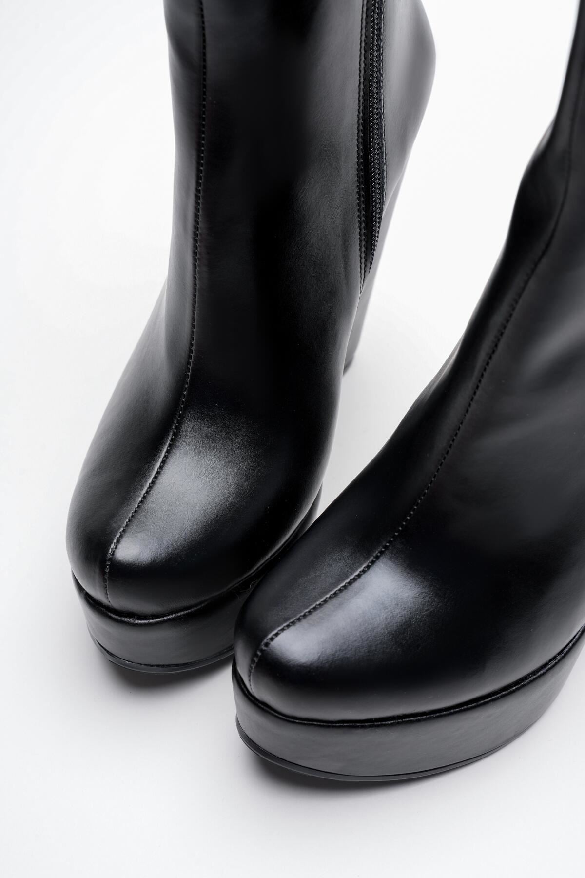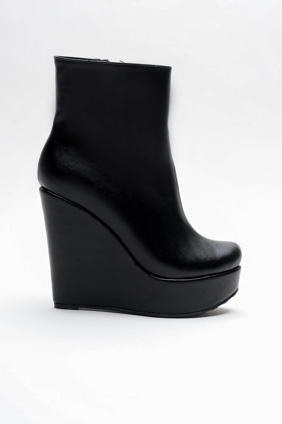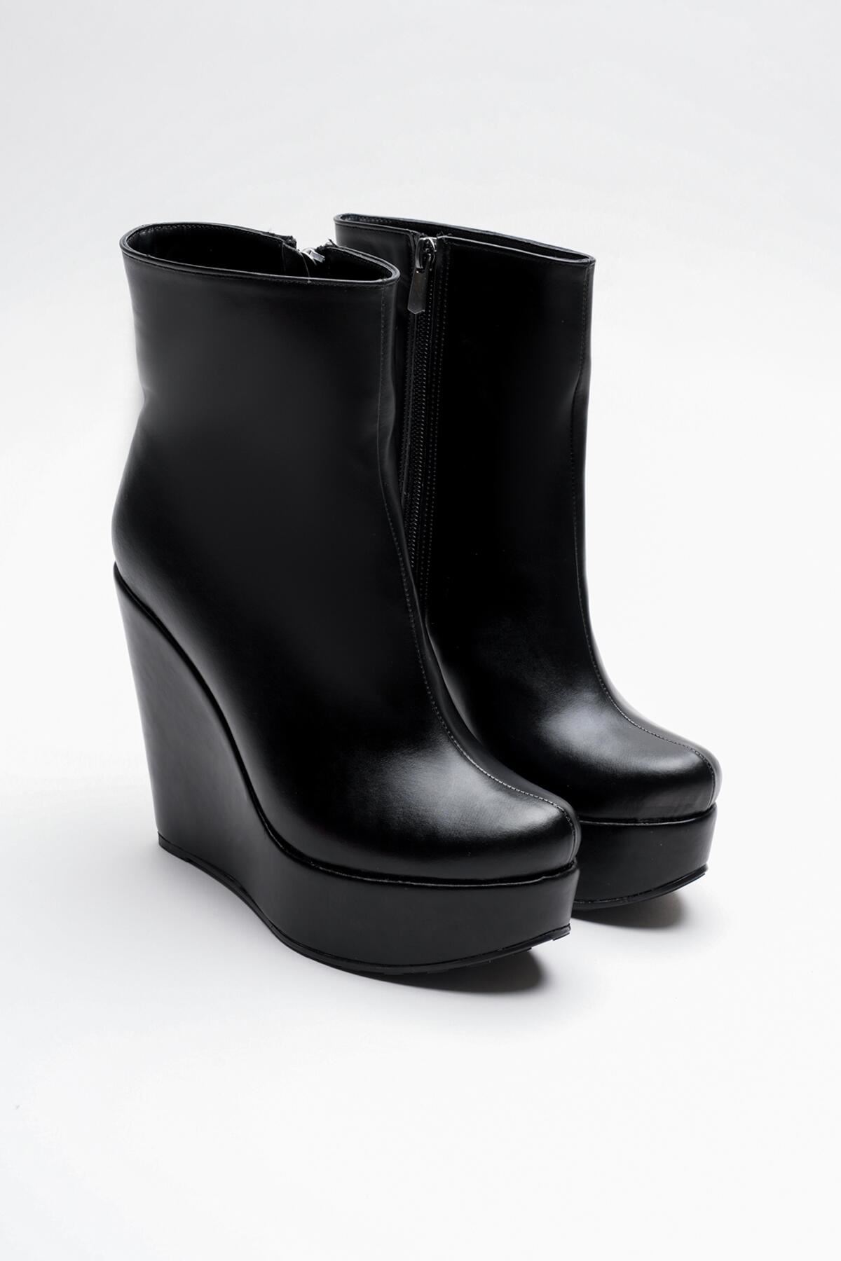 Siyah Cilt Daina Dolgu Topuklu Kadın Bot