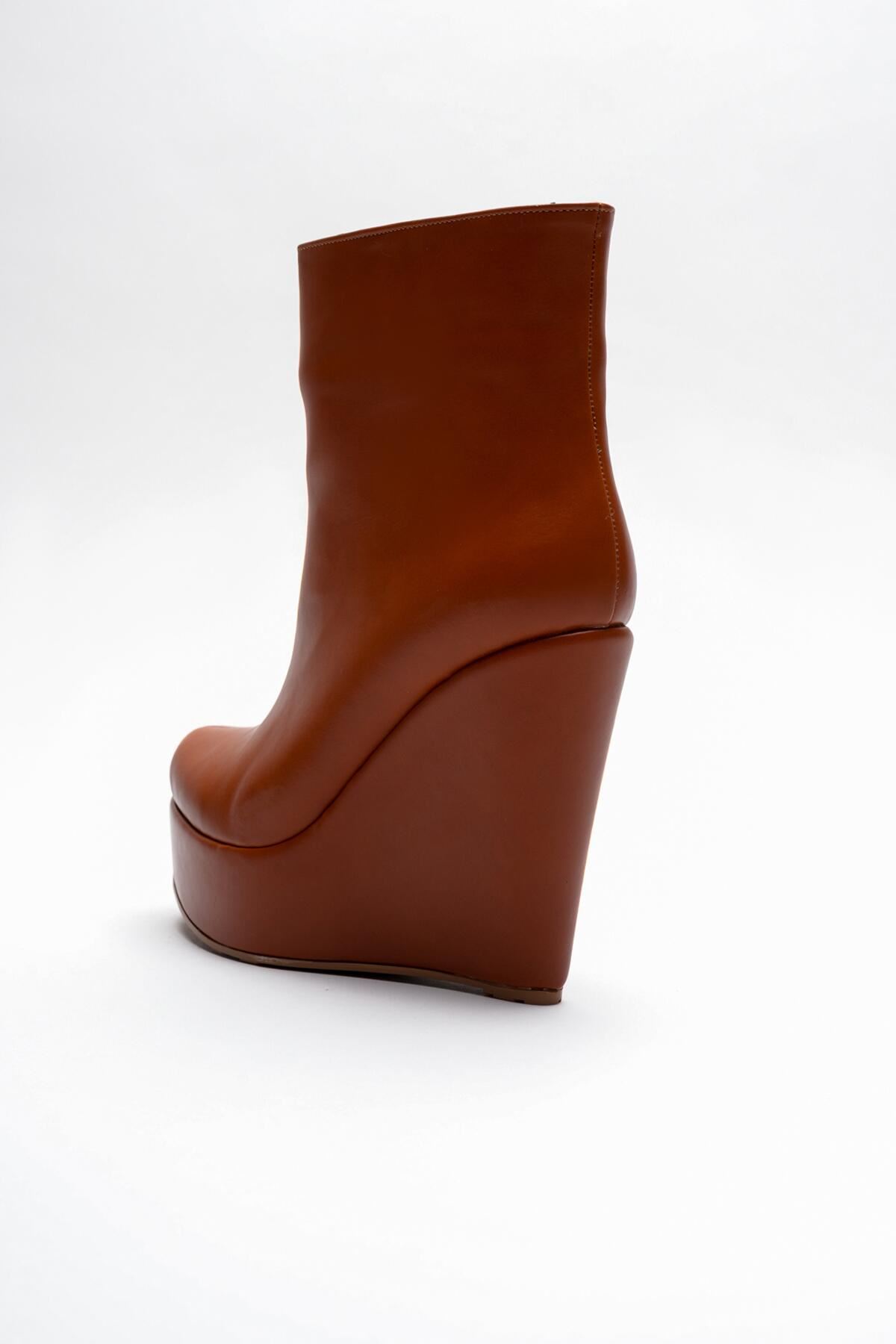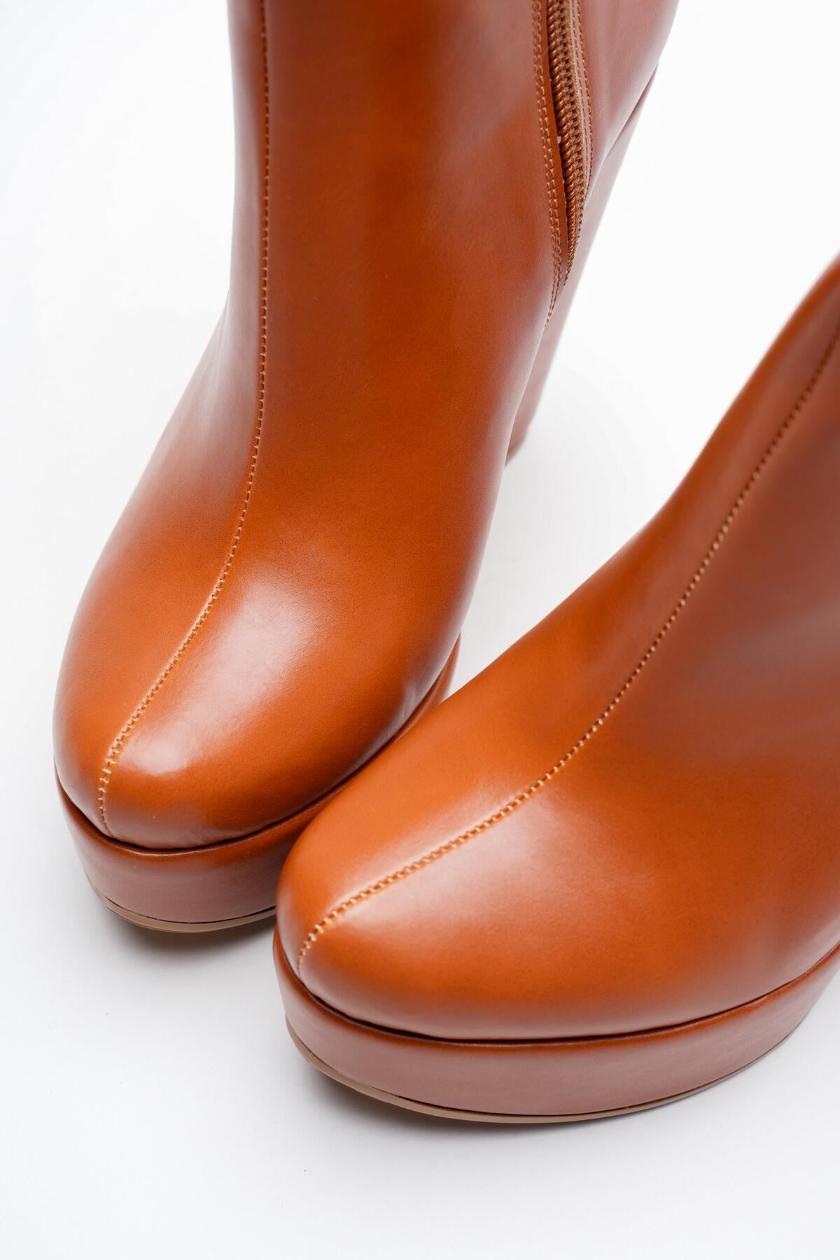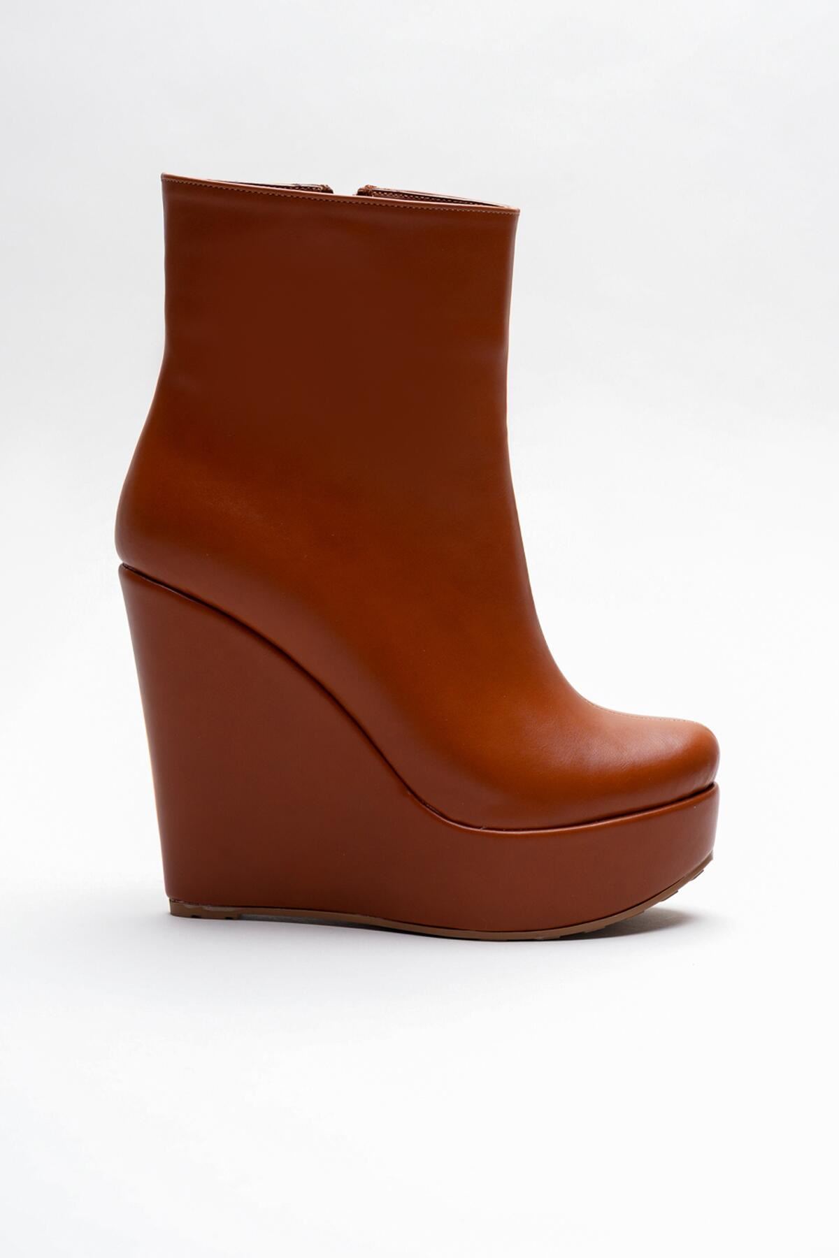 Taba Cilt Daina Dolgu Topuklu Kadın Bot