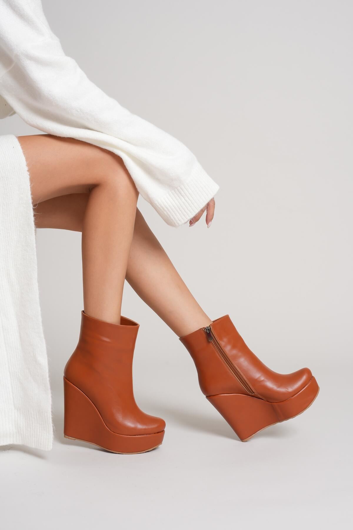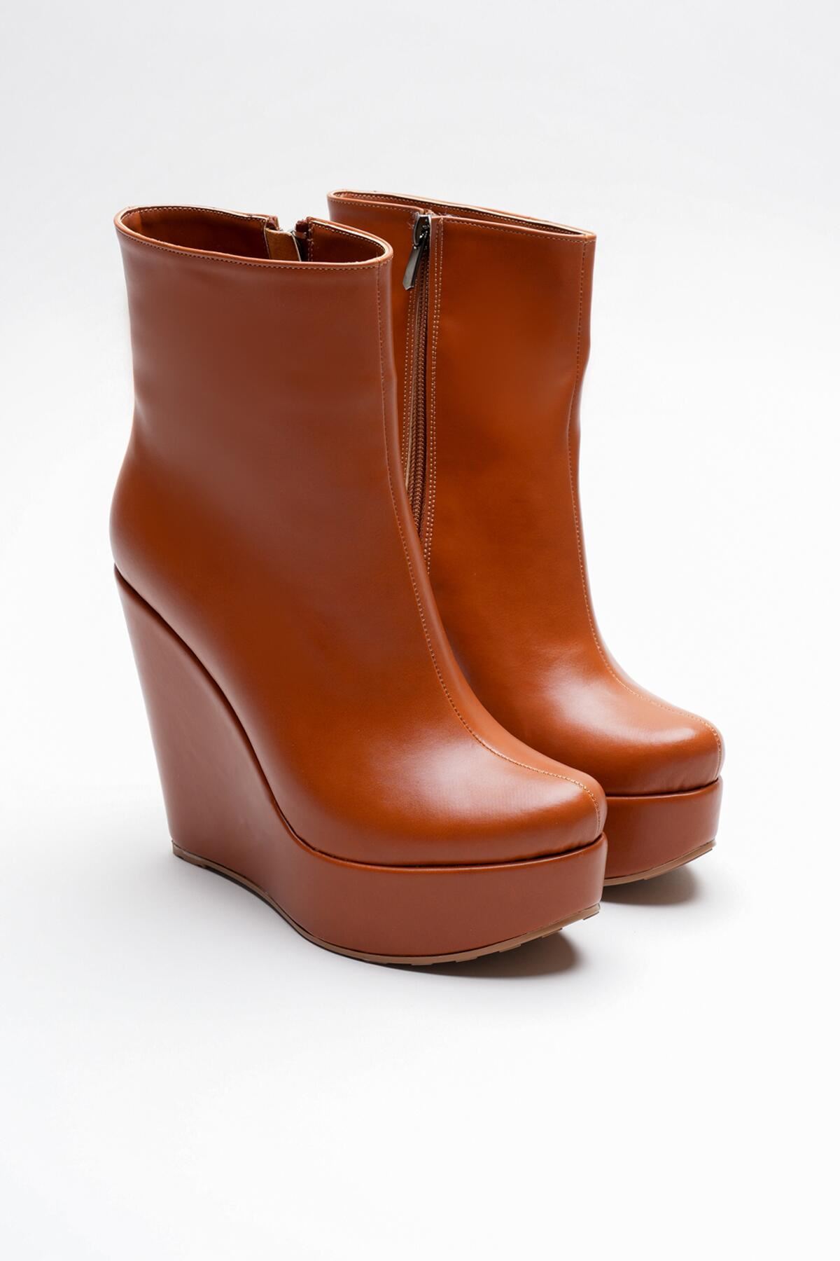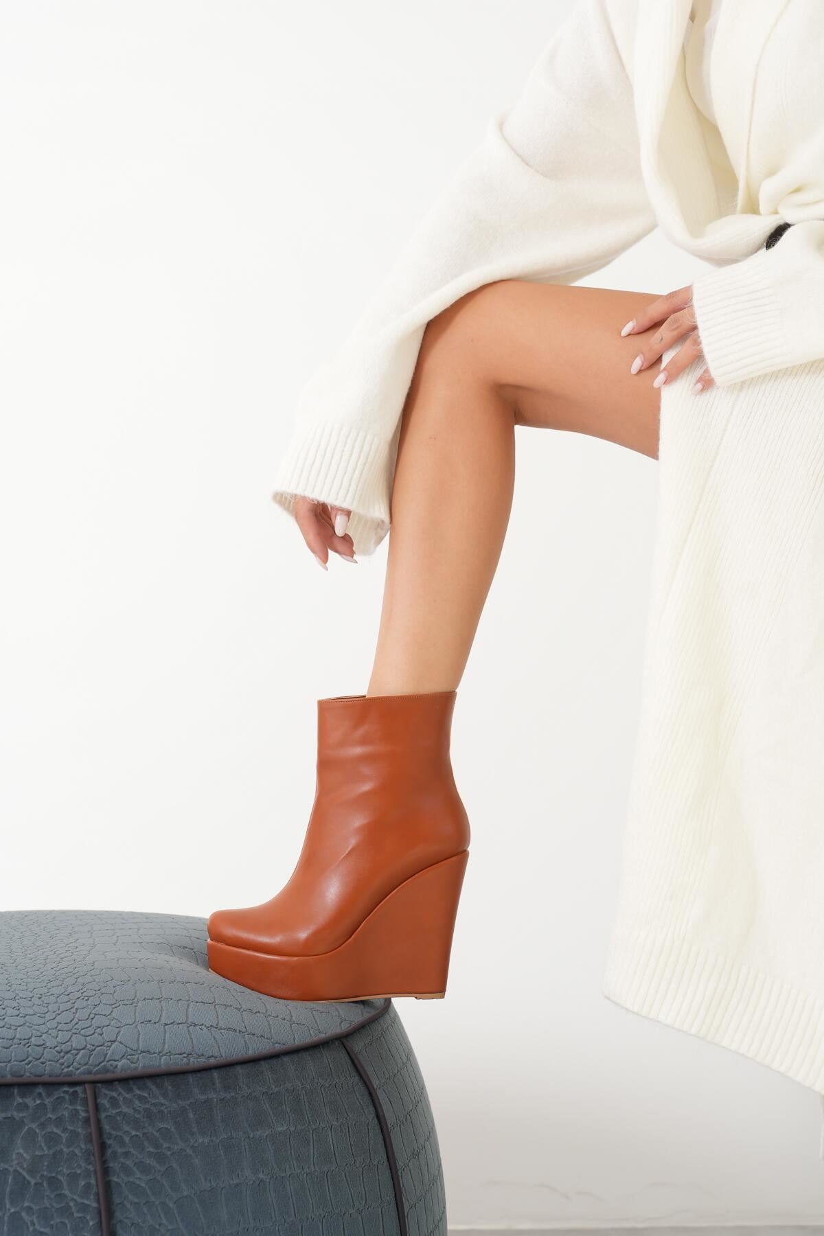 Taba Cilt Daina Dolgu Topuklu Kadın Bot
