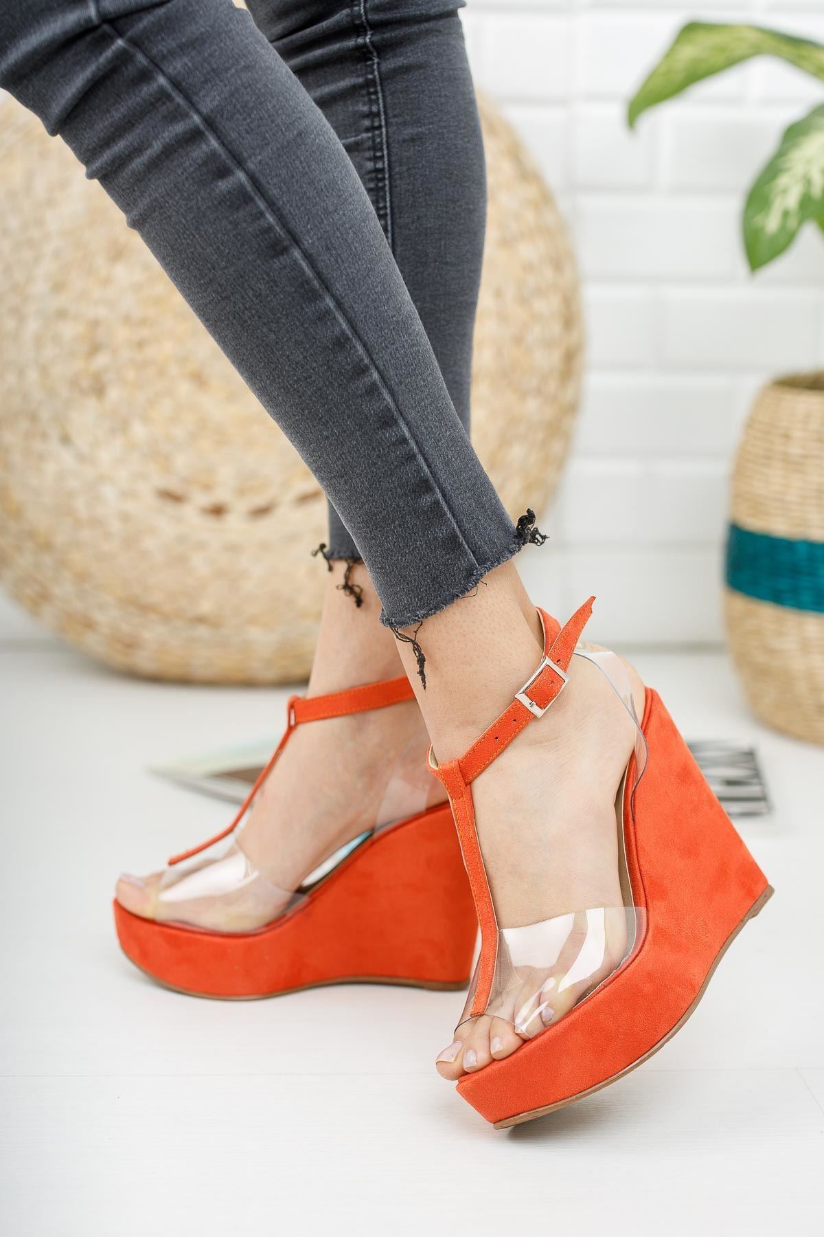 Turuncu Mason Şeffaf Dolgu Topuklu Ayakkabı