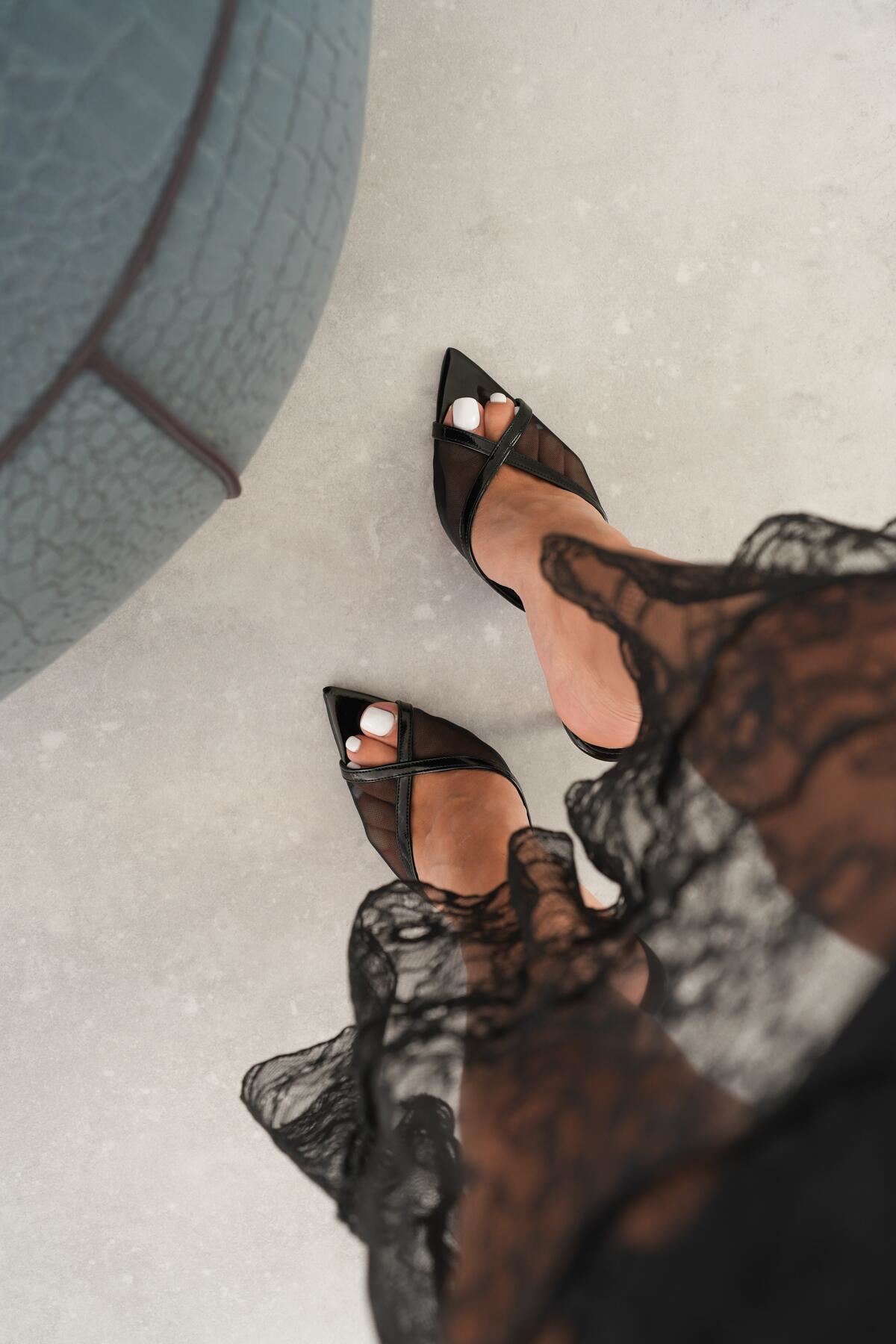 Yekta Siyah Rugan Kadın İnce Topuklu Ayakkabı